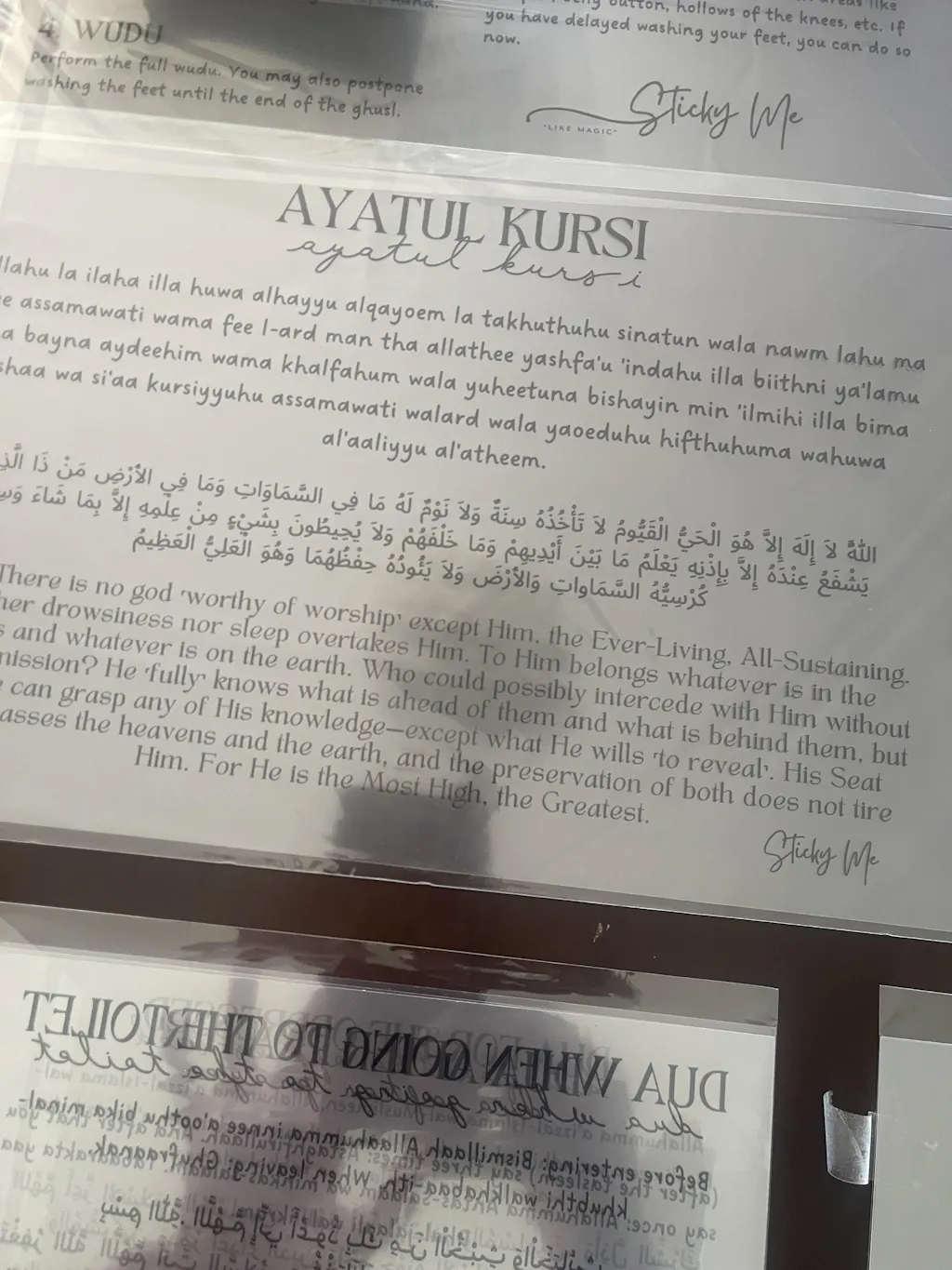 I stumbled upon this brilliant “sticky me” page on insta and instantly got hooked to all these Dua’a. A perfect way to remind myself and others. I bought a range of different Dua’a including two stickers with 25 names of our beloved prophets, Aytul Kursi, making wudu steps, Dua’a for Palestine and Dua’a for the oppressed. These are so incredibly cool, you can stick them up and easily remove them from your walls without any issues, I bought them all for our beautiful new mosque North Shore Islamic Association in New Zealand 🇳🇿(sticked them all up in NSIA masjid 🤲🏼) and now insha’Allah the team behind Sticky me earns the hasanat for this amazing innovative creativity. What are you waiting for - add to cart and check out! You would love all of these Dua’a adding a perfect touch to your home decor and brings in Barakah. Great for kids to learn and recite the Dua’a 🤲🏼🙂